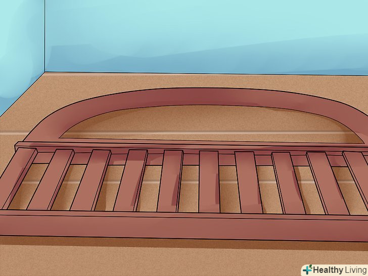 Прикріпіть підтримуючу частину матраца до основи ліжечка. підтримуюча частина матраца є дошкою або панеллю (яка виглядає як сходи) в залежності від типу ліжечка. Це те, на чому буде лежати матрац, тому її необхідно правильно прикріпити. Перевірте висоту і прикріпіть верхню і нижню частину за допомогою шурупів, болтів або інших інструментів в залежності від типу ліжечка.- Якщо у вас нове ліжечко, вам будуть потрібні кронштейни для з'єднання нижньої і верхньої частини.