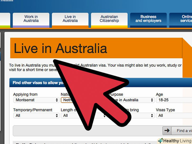 Подайте заявку на отримання eVisitor візи, якщо хочете приїхати в Австралію для подорожі або у справах і ви з відповідної європейської країни. вона розроблена для перебування в Австралії 3 і менше місяця і виходить за межами Австралії.- Відвідайте сайт www.immi.gov.au/e_visa/evisitor.htm для подачі заяви на отримання візи. Це платно.