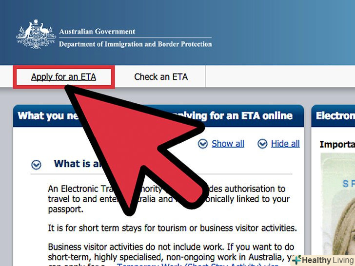 Подайте заяву на отримання дозволу на короткострокове безвізове перебування. це необхідно для будь-якої короткострокової поїздки в Австралію, і вам необхідно буде пред'явити його при посадці в літак до Австралії. Цей дозвіл діє до 3 місяців.- Цей тип візи коштує $20. Ви можете подати заяву на її отримання на www.eta.immi.gov.au. якщо у вас вже є інший тип візи або був прострочений термін безвізового перебування раніше, можливо вам доведеться пройти співбесіду в посольстві.