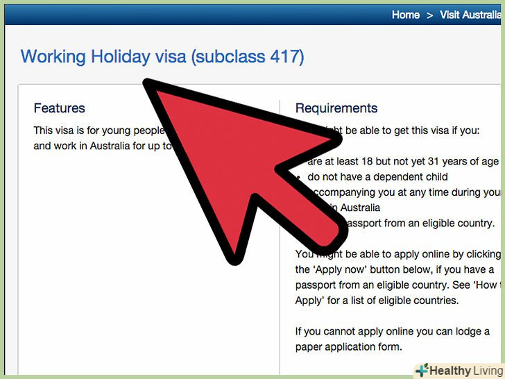 Подайте заяву на отримання тимчасової робочої візи. ця Віза доступна тільки для людей з певних країн віком 18-30 років. Вона дає можливість подорожувати, підробляти і/або вчитися протягом 12 місяців.- Громадяни списку певних країн, включаючи Великобританію та багато європейських країн, повинні подати заявку на підклас візи 415 , щоб отримати дозвіл на тимчасову роботу в Австралії. З цією візою ви можете перебувати в країні і працювати до 12 місяців, вчитися до 4 місяців і підробляти в цей період. Відвідайте сторінку www.immi.gov.au/visitors/working-holiday/417/how-to-apply.htm щоб отримати форму заявки і дізнатися, як її заповнювати.