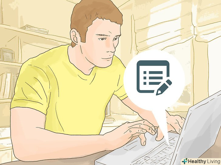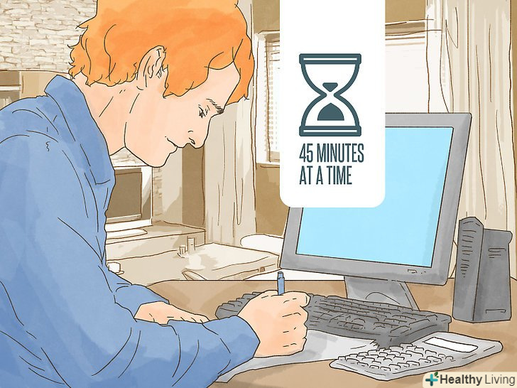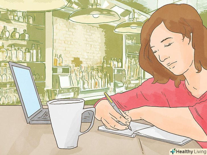Працюйте підходами не менше 45 хвилин. чим довше ви працюєте над текстом, тим вище шанс зануритися в сюжет, особливо на самому початку. Якщо піддатися спокусі і писати наскоками по 10 або 15 хвилин, то сюжет ризикує стати хаотичним і нескладним із заплутаною ниткою оповідання.[13]- Вибирайте оптимальне місце для роботи. Спробуйте працювати вдома, в кафе або бібліотеці, в парку та інших місцях. Комусь для натхнення потрібні фонові розмови або музика, а хтось може працювати тільки в тиші.[14]