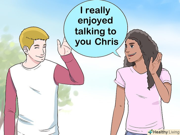 - Перш ніж піти, вам слід подивитися хлопцеві прямо в очі, посміхнутися і сказати: «я була рада поговорити з тобою, _ _ _ _ _ _ (його ім'я)». Ця фраза запам'ятається йому набагато краще, ніж»Побачимося пізніше".