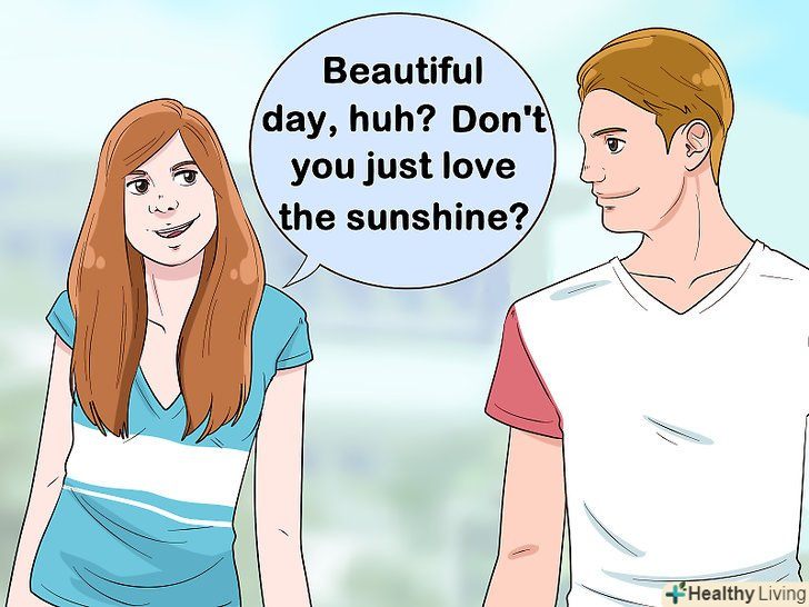 Використовуйте обставини навколо вас. Один з найпростіших способів почати розмову — це скористатися оточуючими вас обставинами. Це може бути що завгодно: погода, Розклад уроків, результат спортивної гри. Ви можете запитати Його, що він думає про, наприклад, сильний дощ або додаткову пару, або самої прокоментувати ситуацію і дочекатися його відповіді. [2]- Розмови про погоду можуть здатися занадто банальними для початку бесіди, але цей спосіб працює. Спробуйте сказати щось на кшталт: "відмінна погода, чи не так?"Мета цієї фрази проста-почати розмову. Як тільки розмова заладиться, починайте обговорювати більш цікаві теми.