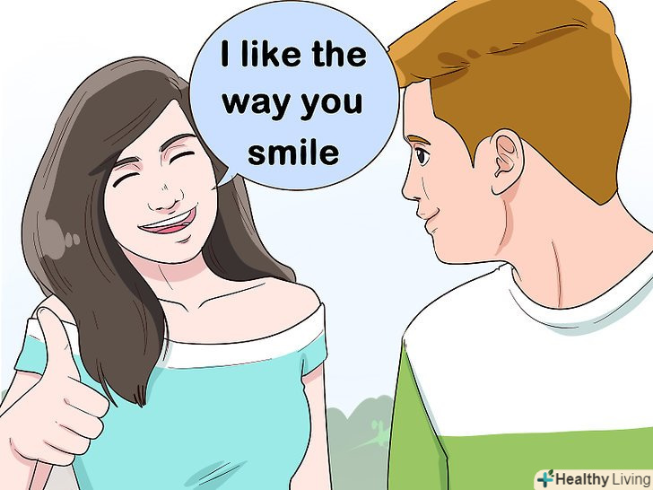 Хваліть його. [4] хлопці люблять компліменти так само, як дівчата. Будьте щирі. Сказати йому комплімент буде найкращим способом почати розмову. Який сказати комплімент-залежить від того, наскільки впевнено ви себе почуваєте.- Якщо ви налаштовані рішуче, то похваліть його дивовижні очі або його посмішку як у Бреда Піта. Він зрозуміє, що ви знаходите його фізично привабливими, а це подобається всім хлопцям.