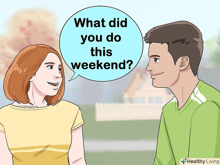 Задавайте йому відкриті питання. вони потрібні для продовження розмови. Уникайте питань, на які можна відповісти одним словом або автоматично, не замислюючись.- Наприклад, не починайте розмову з фрази: "Як справи?", на яку він, ймовірно, рефлекторно відповість:»добре". Замість цього запитайте у нього, що він робив у минулі вихідні або що він думає про нового начальника. Такі питання змусять його подумати над відповіддю.