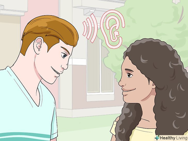 СлухайтеБільше, ніж говорите. [6] розмовний етикет вимагає, щоб ви слухали більше, ніж говорили. Ось чому у вас є два вуха і тільки один рот, вірно? Тому під час розмови намагайтеся дійсно слухати його. До речі, якщо ви ніколи не помічали цього, хлопцям, як правило, подобається звук власного голосу.- Навіть коли ви мовчите, давайте йому зрозуміти, що ви зацікавлені. Показуйте це посмішкою, кивком або жестом.