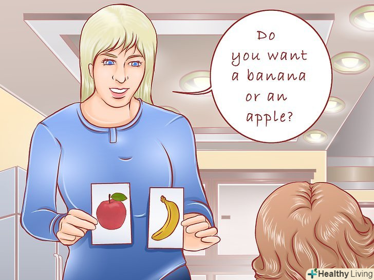 Надайте вибір за допомогою тематичної дошки. [13] як і наочний графік, ці дошки з картинками можуть містити різні варіанти дій в рамках конкретного заняття або періоду часу. Людина може вказувати на картинки, щоб висловити своє побажання і відчути контроль над ситуацією.