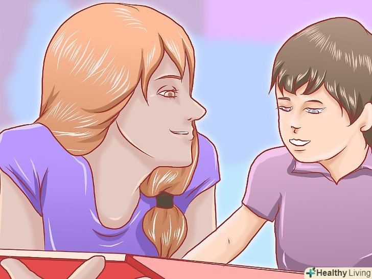 Прислухайтеся до слів «досить» або «не треба». особи з аутизмом швидко втомлюються від надлишку сенсорної інформації. Це не грубість, просто вони намагаються пристосуватися до навколишнього світу. [1]- Запропонуйте батькам використовувати «сигнальні картки». Так, це може бути картка з простим текстом на кшталт: «Мені потрібна перерва». Картки дуже корисні з мовчазною дитиною - так він зможе повідомити, що йому потрібно відпочити від певної людини або стомлюючого заняття. [2]