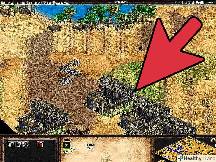 - Розбивши одного ворога, починайте будувати бараки біля бази іншого - якщо тільки, звичайно, ви не грали 1 на 1 Нові бараки повинні точно так же штампувати хускарлів, поки ви не вперетеся в максимально доступний розмір населення (210 юнітів).