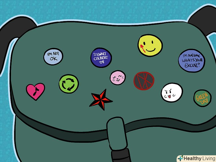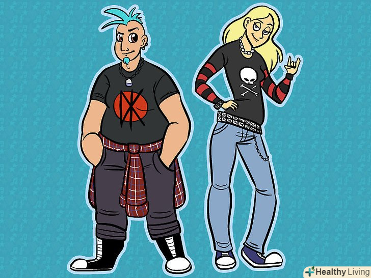 Купуйте нашивки і значки, і розташовуйте їх у випадковому порядку на сумках і одязі. добре було б інвестувати в шиповані пояси. Їх можна знайти в магазинах Primark, Haze, Voodoo, PacSun, Claire's Accessories, Attitude і New Look та інших подібних магазинах. Тонкий, яскравий пояс теж добре підходить, носіть його з вузькими чорними, блакитними, червоними або білими джинсами або потертими джинсами.