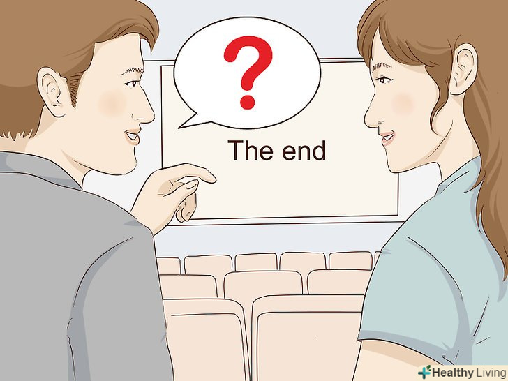 Запитайте дівчину, що вона думає про фільм. спробуйте зав'язати спілкування, запитавши думку дівчини про фільм. Не забудьте також висловити свої думки!- Наприклад, можете запитати: "що думаєш про ту екшн сцені?"або:" тобі сподобалася кінцівка?"