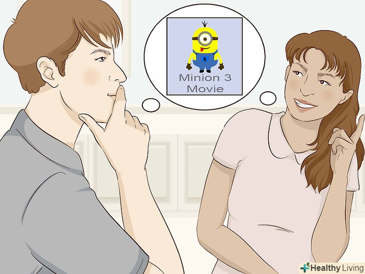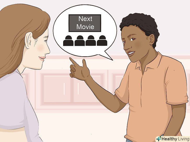 Виберіть фільм Разом або знайдіть золоту середину. Якщо вам є, що сказати, заведіть бесіду про фільм, який збираєтеся подивитися. Запропонуйте своєму другові / подрузі кілька ідей і разом виберіть щось саме підходяще. Таким чином, ви обидва зможете насолодитися фільмом. [2]- Згода подивитися фільм, який вибере ваша подруга — ще один спосіб показати їй, що ви згодні йти на компроміс, а це дуже приваблива якість в партнері.