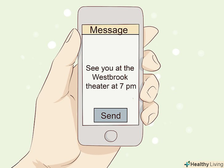 Домовтеся з другом/подругою про час. як тільки ви вирішили, на який фільм підете, зв'яжіться один з одним і домовтеся про час зустрічі. Домовляючись про час, не забудьте написати, як сильно ви чекаєте побачення.- Наприклад, можна написати: "Побачимося біля кінотеатру о 7 вечора. Дуже чекаю зустрічі:)", можна просто зателефонувати і сказати: "зустрінемося поруч з кінотеатром о 6.30. Не можу дочекатися!"