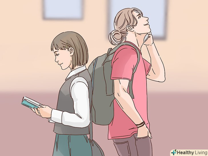 Ведіть себе так, ніби ця людина вас забавляє. коли бачите його, не п'яльтесь занадто відверто. Вам краще акуратно поглядати на нього зрідка і блукати очима по кімнаті в час, що залишився. Постарайтеся легко посміхнутися і зустрітися з ним очима, Якщо є така можливість. [3]