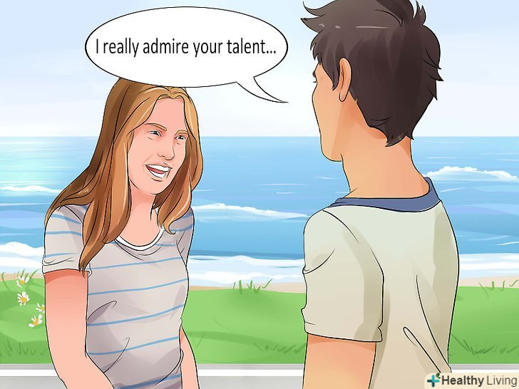 Робіть їй компліменти. щирі компліменти і знаки уваги – відмінний спосіб показати дівчині, що з вами їй буде комфортно. Захопіться її зовнішністю, інтелектом, характером, здібностями і так далі. [3]- Наприклад, ви можете сказати: "О, ти така прекрасна художниця! У тебе дійсно талант!"або" більшість людей погано розбирається в математиці. Здорово, що ти розумієш такий складний предмет"»