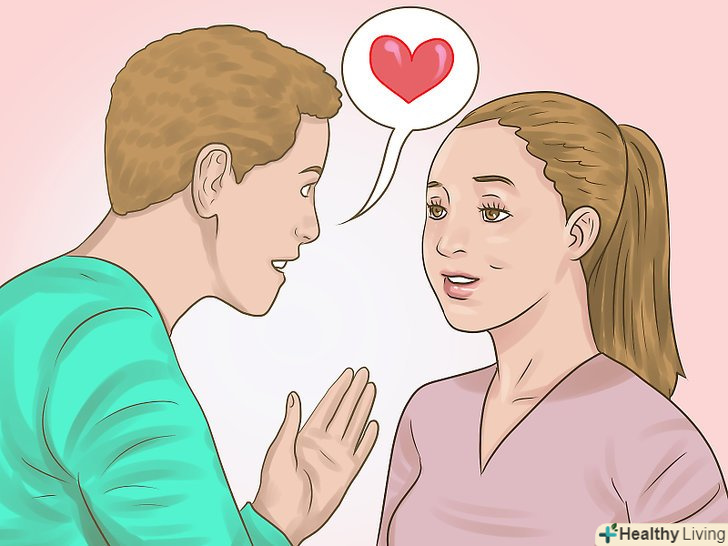 Скажіть: "я люблю тебе". коли ви залишитеся наодинці з нею і відчуєте, що потрібний момент настав, зберіться з духом і скажіть: «Я люблю тебе». Подивіться їй в очі, посміхніться і скажіть ці слова. Необов'язково чекати ідеального моменту або ефектно обставляти своє визнання — досить просто бути щирим.- Розкажіть їй, коли ви відчули, що любите її і що вам в ній особливо подобається. [4]