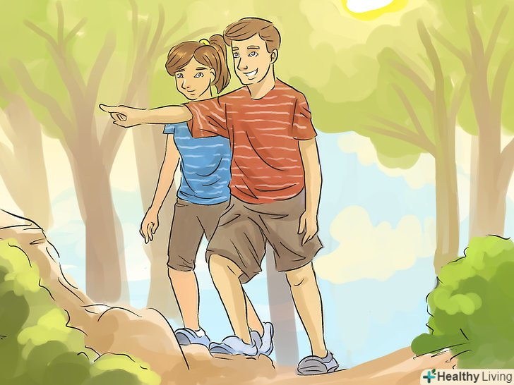 Вибирайте активні заняття. спільні заняття спортом — це відмінний спосіб провести час разом, крім спілкування вдома і в школі. Якщо в школі є тренажерний зал, запишіться в нього разом. Або можете вступити в одну спортивну команду. [2]- Прогулюйтеся в парку або закидайте м'яч в кошик на спортивному майданчику — це теж відмінні варіанти спільних активних занять.
