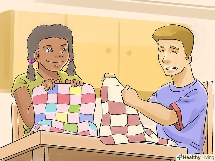 Обмінюйтеся предметами одягу. Подаруйте футболку, спортивну куртку або толстовку з вашим ім'ям своєму хлопцеві або дівчині. Якщо у вас будуть предмети одягу з вашими іменами, всі будуть сприймати вас як пару. Однак ви можете обмінюватися предметами одягу, навіть якщо на них немає ваших імен. Ви будете ближче один до одного, і інші неодмінно це помітять.- Якщо ви Різні за комплекцією, можливо, це не самий підходящий рада. Людям, які носять одяг невеликого розміру, нерідко підходять речі великих розмірів. Однак якщо ви носите одяг великих розмірів, в маленьких речах ви будете виглядати зовсім не мило, а нерозумно. У той же час, якщо вам подобається, як одяг партнера сидить на вас, незважаючи на те, що вона щільно прилягає до фігури, не соромтеся надягати її.