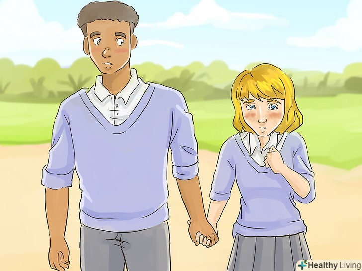 Тримайтеся за руки, коли ви знаходитесь на очах у інших людей. наприклад, тримайтеся за руки, коли ви йдете по шкільному коридору або сидите на спортивних заходах. Сидячи поруч В автобусі, беріть один одного за руку. Перебуваючи в громадському місці або в компанії друзів, тримайте один одного за руки, щоб інші бачили, що ви мила пара.- Швидше за все, ви будете відчувати захват, коли людина, яка Вам подобається, буде брати вас за руку, особливо на початку ваших відносин. В середньому і старшому ланці, як правило, людей, які тримаються за руки, вважають парою.