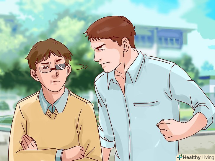 Будьте впевнені в собі. Якщо ви випромінюєте впевненість, то битися вам навряд чи доведеться. Зріла людина відчуває впевненість у своїх силах, що допомагає розібратися в складній ситуації. Існує безліч способів розвинути впевненість в собі і демонструвати її оточуючим. [4]- Зосередьтеся на своїх сильних сторонах. Якщо хтось дражнить вас через одяг, думайте про себе: "принаймні, я відмінний футболіст!"