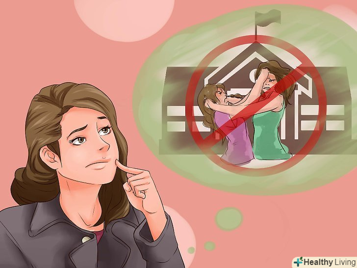 В першу чергу спробуйте знайти інше рішення. ви повинні поговорити з одним з батьків або вчителем перед бійкою. Спробуйте знайти інший спосіб вирішення ваших проблем, що не включає в себе насильство. Зрозуміло, що ви не хочете здаватися слабкіше інших дівчат, але якщо ви подобаєтеся іншим дівчатам за вашу жорсткість, то, хм, ймовірно, ви їм зовсім не подобаєтеся. Це не ваші справжні друзі, і вони ніколи ними не стануть. [1]- У бійки може бути багато поганих наслідків для вас. Якщо ви дійсно серйозно травмуєте іншу дівчину, навіть якщо це вона почне бійку, вас можуть притягнути до кримінальної відповідальності. Це може статися навіть випадково, так що краще триматися осторонь, якщо можливо.