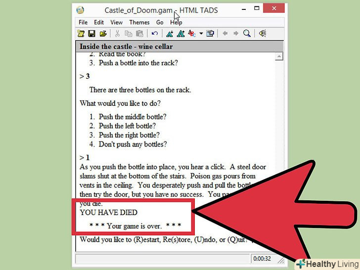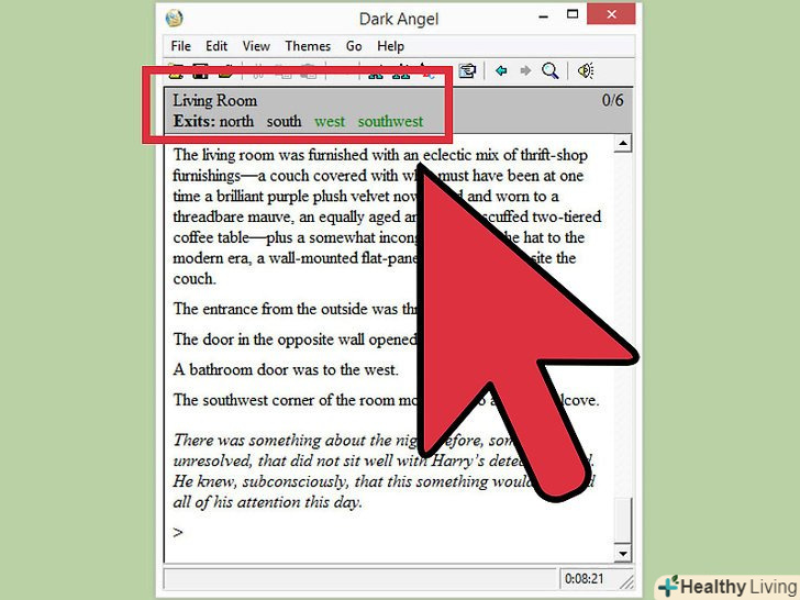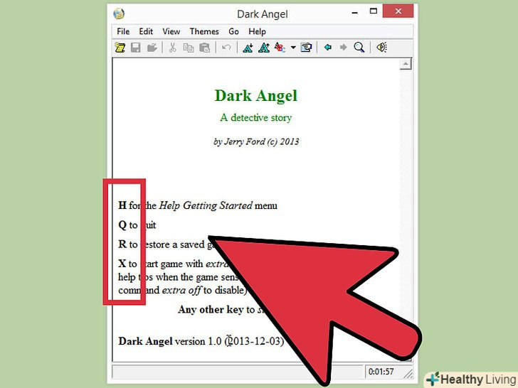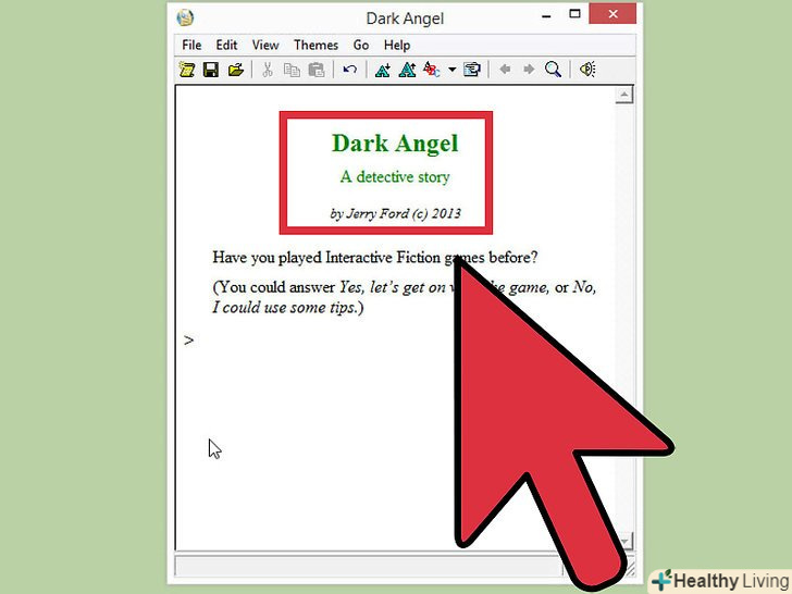 Зверніться за допомогою щодо синтаксису. якщо ваша перша кімната працює не так, як ви Того хочете або ви просто не знаєте, як домогтися бажаного результату в наявній програмі, пошукайте меню «інструкції» або «довідка», а також файл «Read Me» в папці з програмою. Якщо і цього не достатньо, задайте своє питання на форумі сайту, де ви завантажили програмне забезпечення або на загальному форумі інтерактивної белетристики.
