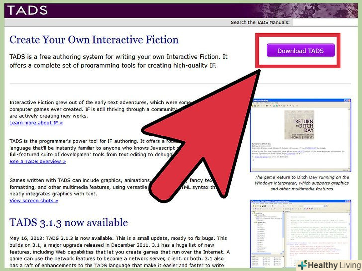 Якщо вам знайомі Основи програмування, спробуйте освоїти TADS 3. Якщо ви бажаєте підійти до створення текстової гри, як до проекту кодування, TADS 3 може виявитися найбільш комплексним програмним забезпеченням для даного завдання. Робота в ньому пройде ще глаже, якщо Ви знайомі з мовою програмування C++ і/або Javascript. [1] TADS 3 безкоштовний і доступний для таких систем, як Windows, Mac і Linux.- Версія TADS 3 Для Windows (і тільки вона) йде разом з доповненням «Workbench», завдяки якій програма стала ще більш доступною для людей, необізнаних в програмуванні, і в цілому більш зручна для використанні. [2]