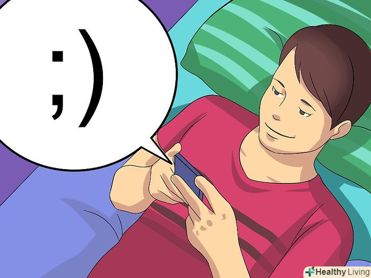 Використовуйте зухвалі смайли.одна з переваг спілкування з використанням смайликів-це можливість доповнити слова конкретними емоціями. Під час флірту можна часто підморгувати (;)) і «показувати мову» (:p) — такі смайлики є практично в будь-якому сервісі. Доповнюйте свої грайливі і кокетливі повідомлення такими смайлами, щоб висловити чіткий намір і при цьому зберегти обличчя.- Попередження: не зловживайте смайликами. Використовуйте їх в міру, щоб ваш флірт виглядав м'яко, а за невизначеними фразами можна було чітко зрозуміти ваші наміри. При постійному використанні смайликів ви покажете себе незрілим або набридливим людиною.
