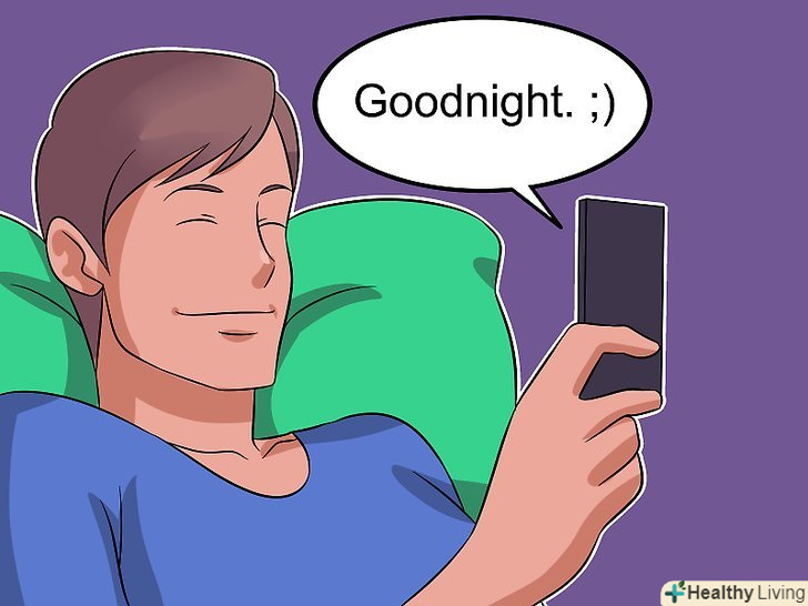 Вмійте завершити бесіду.одне з правил флірту в мережі в реальному житті полягає в тому, щоб вчасно вийти з розмови і змусити співрозмовника чекати нової бесіди. В обміні повідомленнями це означає, що потрібно встигнути попрощатися до того, як ваша розмова почне в'янути. Так у людини залишаться тільки приємні і веселі спогади про діалог замість незручних спроб придумати нову тему для обговорення.- Якщо співрозмовник добре реагує на флірт, спробуйте завершити розмову зухвалою фразою, щоб залишити незабутнє враження. Також вам на допомогу прийдуть смайлики. Наприклад, якщо повідомлення «На добраніч» буде занадто безвихідним і очікуваним, то «на добраніч ;)» натякне, що ви думаєте про співрозмовника (і, якщо все складеться вдало, він, можливо, теж буде думати про вас).