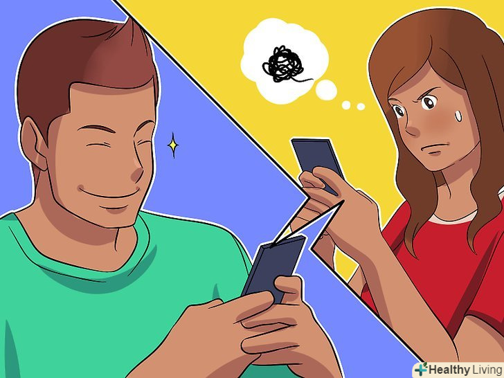 Не зловживайте компліментами. Флірт повинен бути веселим. Більшості людей приємно чути похвалу і компліменти до певного моменту, після чого людина може відчути незручність і засмущаться. Також він може засумніватися в ваших мотивах і порахувати, що вам від нього щось потрібно. До того ж, зваблива сила химерних і перебільшених компліментів слабшає (якщо не сказати більше), коли вони відображаються в маленькому текстовому полі на екрані смартфона разом з мультяшними посмішками.- Замість частих компліментів краще зосередитися на спробах розвивати захоплюючу бесіду. Дотримуйтесь правила " показувати, а не говорити». Іншими словами, висловлюйте симпатію прагненням підтримати цікаву розмову, а не сухою констатацією факту.