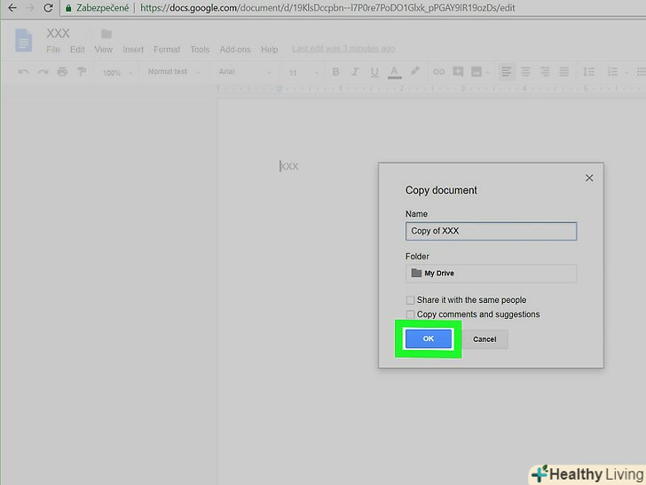 Клацніть поOK.ця кнопка знаходиться в нижній частині вікна. Файл буде збережений у вашому обліковому записі Google Диска з дозволом на читання і запис.