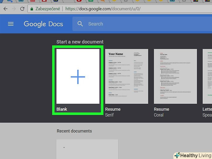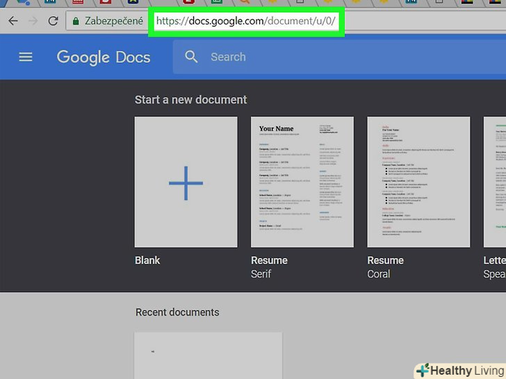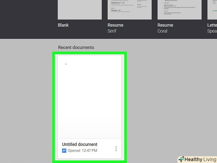 Відкрийте або створіть документ.двічі клацніть по існуючому документу, щоб відкрити його, або натисніть "Створити документ" у верхній лівій частині сторінки, щоб створити новий документ.