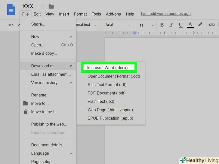 Виберіть формат файлу.у більшості випадків можна вибрати "Microsoft Word (docx)»або "Документ PDF".<- Якщо ви працюєте на Комп'ютері Mac, на якому немає Microsoft Word, відкрийте документ Word у програмі "перегляд".