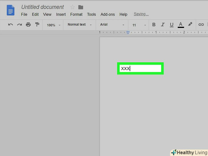 Введіть текст або іншу інформацію.якщо документ потрібно наповнити контентом, зробіть це зараз.- Щоб змінити ім'я файлу, клацніть по текстовому полю з ім'ям у верхньому лівому куті сторінки і введіть інше ім'я.
