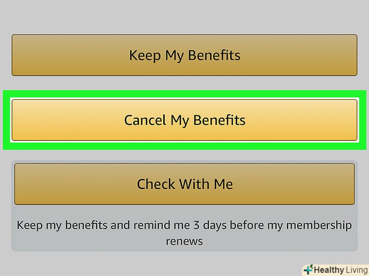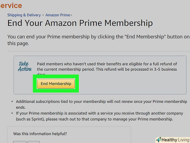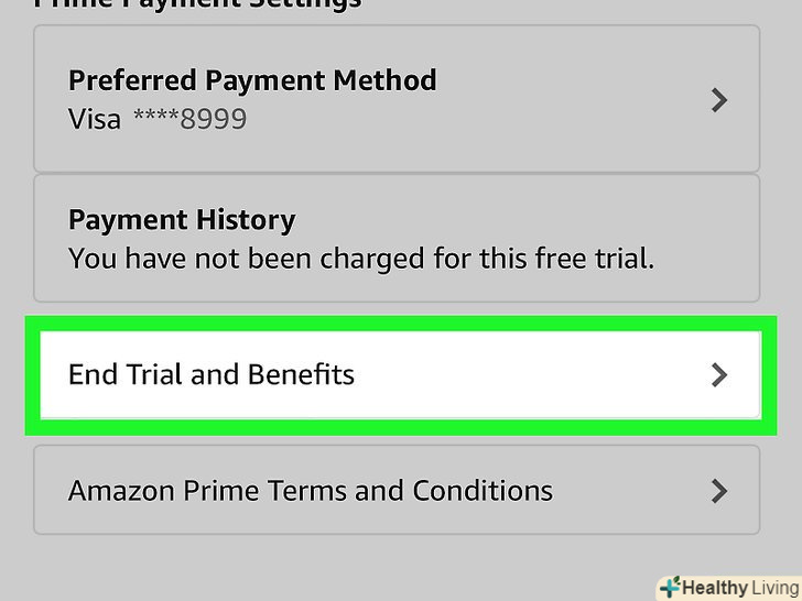 Скасуйте підписку на Amazon Prime. натисніть на «End Now» (відмовитися зараз), щоб скасувати підписку до кінця поточного розрахункового періоду і повернути частину витрачених грошей, або на «End on [Date]» (завершити [Дата]), щоб продовжити користуватися Amazon Prime до кінця розрахункового періоду.[1]