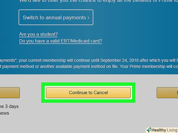 Натисніть на жовту кнопкуContinue to Cancel (продовжити) в нижній частині сторінки.