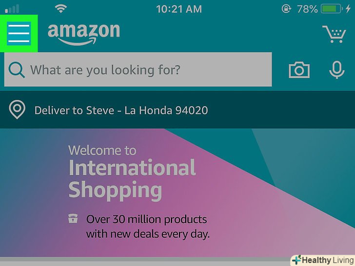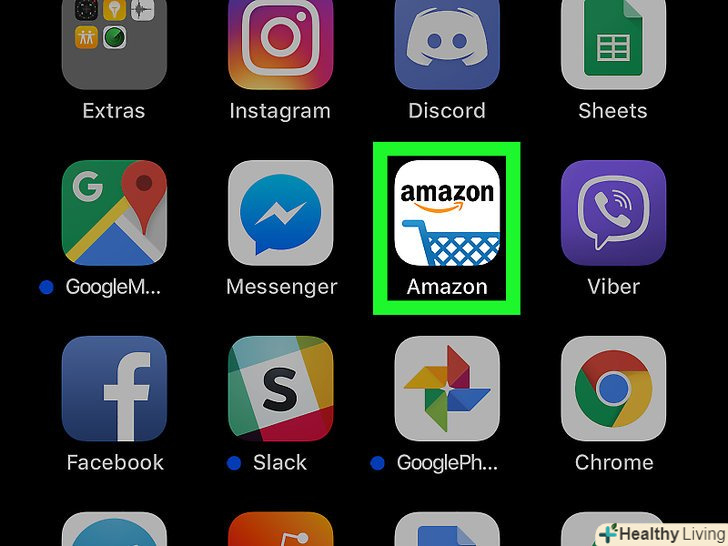 Запустіть "Amazon".торкніться іконки програми «Amazon», на якій зображено магазинний візок з логотипом «Amazon».