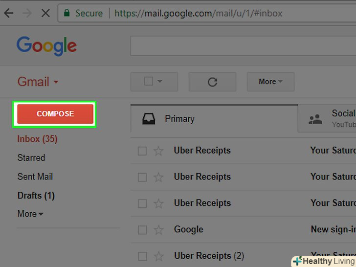Створіть новий лист.не забудьте вказати в листі про прикріплений файл, щоб одержувач переглянув додаток.- Знайдіть кнопку з зображенням олівця в верхній частині екрана або символ, щоб створити новий лист.