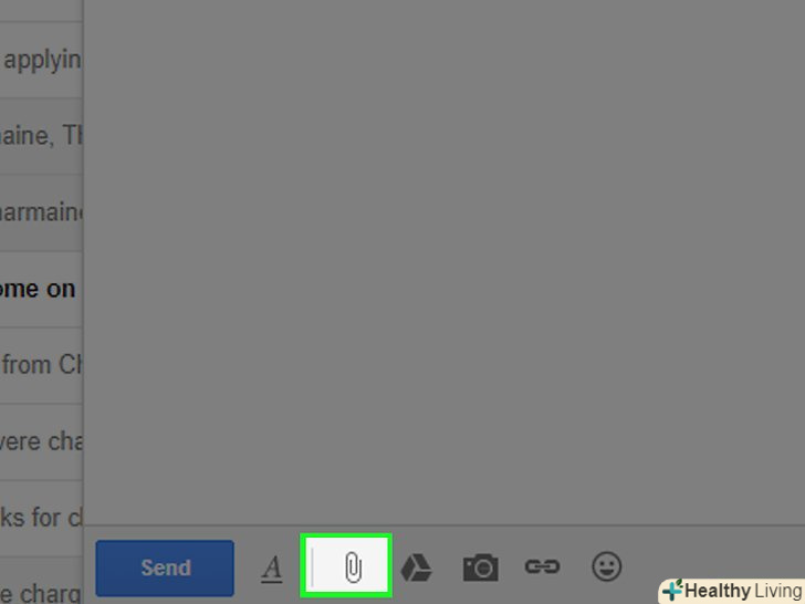 Натисніть кнопку "Прикріпити файли".іноді на цій кнопці зображена скріпка.- У деяких випадках можна клацнути правою кнопкою миші по відсканованому документу і натиснутиКопіювати, після чого знову клацнути правою кнопкою в полі нового листа і натиснути Вставити, щоб прикріпити документ.