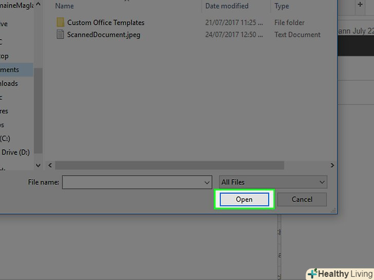 Знайдіть і виберіть відсканований документ у діалоговому вікні.
