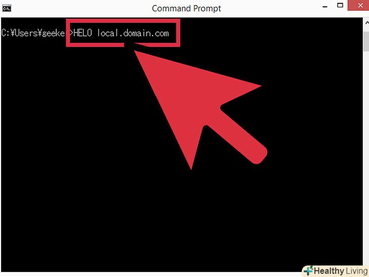 Привітайте сервер.описаний тут метод працює в будь-якій операційній системі. ВведітьHELO yourdomain.com, де yourdomain.com - ім'я домену, з якого ви надсилаєте електронні листи. Зверніть увагу, що в команді helo тільки одна буква l. Натисніть ↵ Enter.- На екрані відобразиться "250 mail.server.com Hello yourdomain.com pleased to meet you."(250 mail.server.com Привіт, yourdomain.com радий зустрічі з вами).
