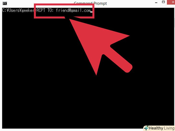 Створіть З'єднання Telnet.введітьtelnet mail.server.com 25, де mail.server.com -це ІМ'Я SMTP-протоколу (Simple Mail Transfer Protocol — простий протокол передачі пошти) вашого поштового сервісу (наприклад, smtp-server.austin.rr.com), а 25-це номер порту, що використовується службою SMTP.- На екрані відобразиться щось аналогічне "220 mail.server.com".