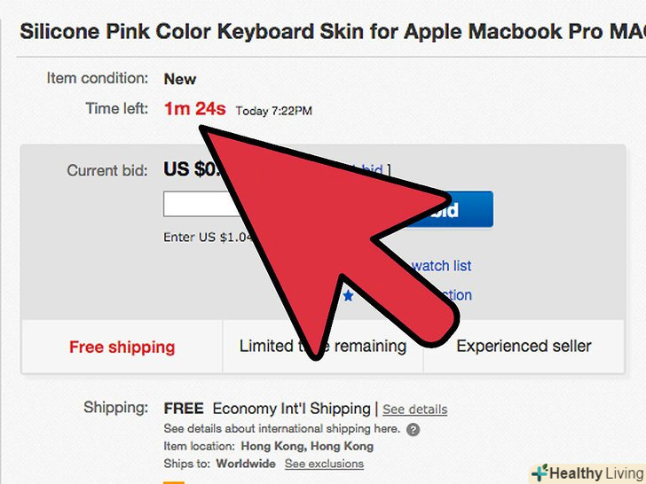 Зачекайте, поки до закінчення торгів не залишиться близько 1 хвилини – 40 секунд. професіонали можуть і, ймовірно, повинні почекати трохи більше, залишивши, скажімо, 30-20 секунд до кінця. Починайте робити ставку.