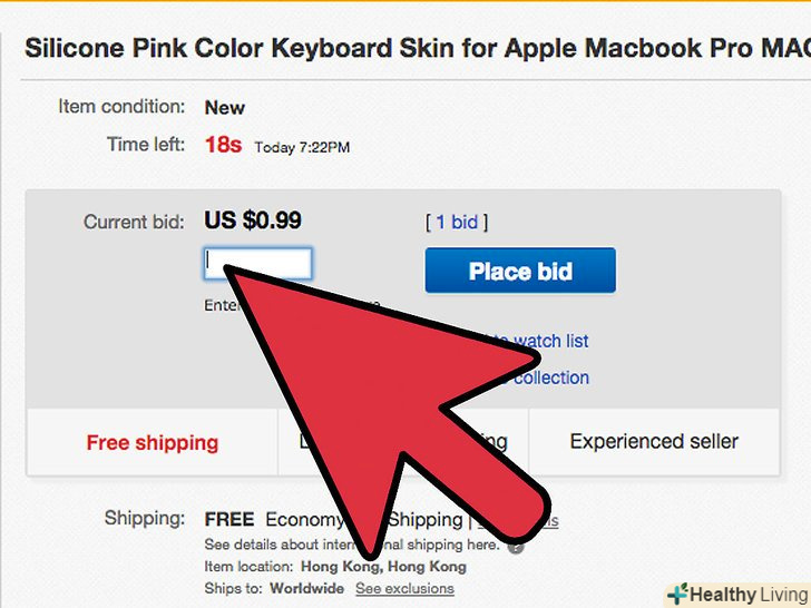 - Знову перейдіть на сайт eBay на новій сторінці і пошукайте товар, на який ви збираєтеся поставити ставку. Ви можете ввести номер лота в поле пошуку, і сайт перейде прямо на потрібний аукціон. Не входьте до свого облікового запису eBay у поточному вікні; ви збираєтеся використовувати його лише для спостереження за термінами.