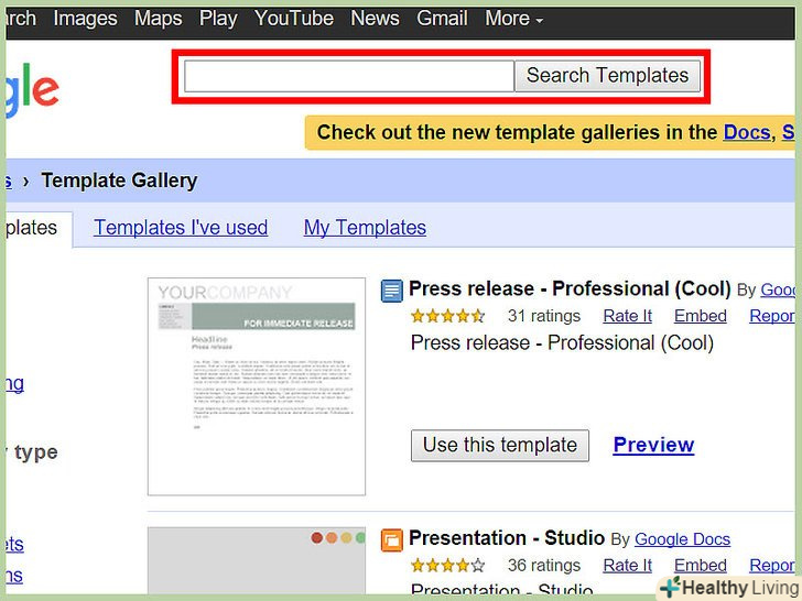 Відкрийте Google Диск Шаблони. відкрийте в браузері нову вкладку і зайдіть на сайт Google Диск Шаблони .
