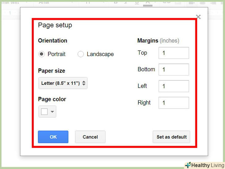 Встановіть орієнтацію. за замовчуванням документ буде мати вертикальну орієнтацію. Якщо ви хочете зробити брошуру з горизонтальною орієнтацією, натисніть в рядку меню на "Файл«, потім»Налаштування сторінки". Переключіть параметр "орієнтація» на «горизонтальна», а потім натисніть "ОК". Орієнтація документа на екрані зміниться на горизонтальну.