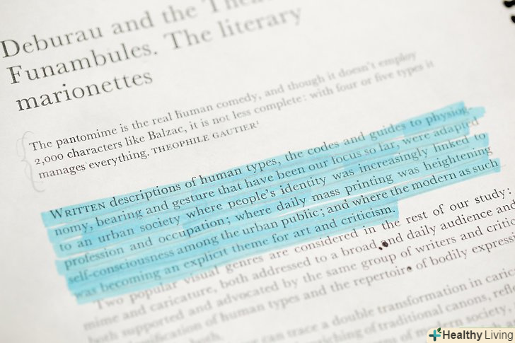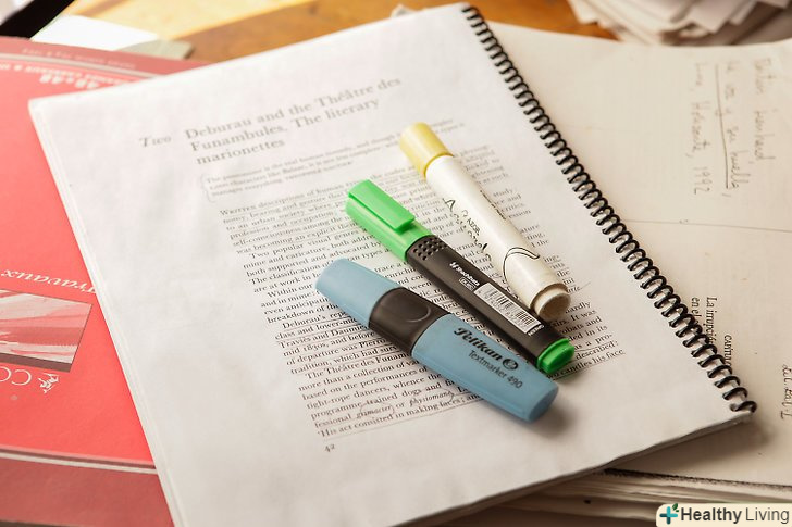Визначте ключову інформацію.вона включає в себе інформацію про основних персонажів, ідеї, події та/або терміни. Використовуйте для виділення основної інформації маркер, які не відволікає від читання і не дуже темного кольору, щоб текст залишався доступним для читання.- Якщо вас відволікають позначки маркером в тексті, використовуйте ручку або олівець для виділення основної інформації.