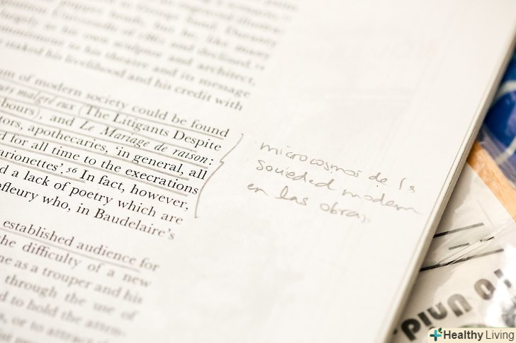 Робіть позначки на полях.якщо ви виділяєте або берете в дужки якусь частину, переконайтеся, що у вас завжди напоготові ручка або олівець, щоб записувати значні моменти на полях, які допоможуть вам швидко згадати, навіщо ви виділили певний уривок тексту. При цьому вам не доведеться перечитувати цілу главу або розділ.