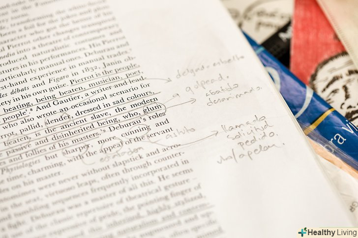 Перевірте значення незнайомих слів.при собі потрібно мати словник, щоб з його допомогою уточнювати значення слів і термінів, які незрозумілі вам. Можливо, значення слова потрібно буде записати на полях, щоб не повертатися до нього знову і знову.- Якщо у вас є Інтернет, пошукайте значення незрозумілих термінів і концепцій.