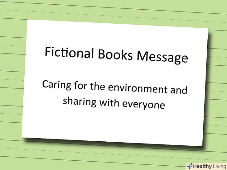 Подумайте про те, яку думку буде нести ваш художній твір.більшість дитячих книг несуть звернення до читачів, починаючи з простих ідей типу "не скупіться» або «потрібно допомагати мамі" і закінчуючи складними уроками життя, наприклад, як пережити смерть коханої людини, як піклуватися про навколишнє середовище або як поважати інші культури. Ви не зобов'язані включати в книгу таке звернення відкритим текстом, і не потрібно насильно вставляти його в текст — якщо ви ви будете повчати, дітям це не сподобається.